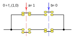 Por sencillez, representaremos un interruptor o conmutador por sus contactos eléctricos, si un interruptor conecta dos puntos a y b, diremos que está abierto si no permite la circulación eléctrica entre esos dos puntos: a y b. Diremos que está cerrado si permite la circulación eléctrica entre esos dos puntos.