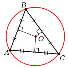 El circuncentro de un triángulo es el punto en el que se cortan las tres mediatrices del triángulo.[1][2][3][4] [5]
