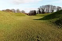 El anfiteatro romano todavía existe en una zona conocida como Querns, al suroeste de la ciudad, pero solo ha sido excavado parcialmente. Las investigaciones en la localidad muestran que fue fortificada en los siglos V o VI. Andrew Breeze argumentó que Gildas recibió su educación posterior en Cirencester a principios del siglo VI, lo que demuestra que todavía era capaz de brindar una educación en retórica y derecho latinos en ese momento. [7] Posiblemente este fuera el palacio de uno de los reyes británicos derrotados por Ceawlin en 577. Más tarde fue el escenario de la Batalla de Cirencester, esta vez entre el rey de Mercia Penda y los reyes de Sajonia Occidental Cynegils y Cwichelm en 628. [8]