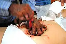 La cirugía psíquica es una práctica pseudocientífica en la que se utilizan trucos, sangre falsa y partes de animales para convencer al paciente y los observadores de que las lesiones u otras condiciones (como tumores) se han eliminado y que la incisión se ha curado espontáneamente.[1][2][3]