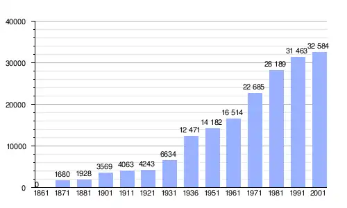 | Gráfica de evolución demográfica de Cisterna di Latina entre 1861 y 2001 |