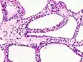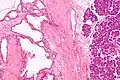 ![]() Micrografía mostrando un cistoadenoma seroso del páncreas. H&E stain. | ||
