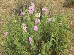 Es un arbusto de hojas muy vellosas con grandes flores rosadas que puede alcanzar 1 metro de altura. Esta especie vegetal se caracteriza entre otras cosas porque sus frutos contienen una gran cantidad de semillas, que en la madurez se tornan a un color pardo negruzco.