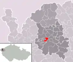 Se encuentra ubicada al norte de la región, cerca de la orilla del río Ohře —un afluente izquierdo del río Elba—, y a poca distancia al sur de la parte occidental de los montes Metálicos y de la frontera con Alemania (estado de Sajonia).[1]