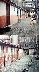 ![]() Patio pequeño de la Ciudadela de Celestino Solar, con las viviendas reconstruidas como espacio para exposiciones y actividades. | ||