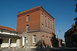 La casa del jilmaestre se construyó en 1530 y formaba parte del monasterio de San Pedro y San Pablo. A partir de 1665, cuando los militares se instalaron en el lugar, se utilizó como Marketenderei, es decir, "edificio del vivandero". El vivandero era un comerciante que acompañaba al ejército para vender provisiones a los soldados. Después de 1820 se transformó en un corral para la guarnición prusiana.[7]