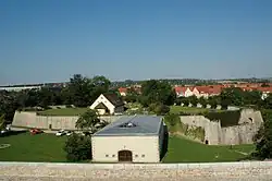 Revellín Peter, construido en 1708, y puente de acceso (2014)