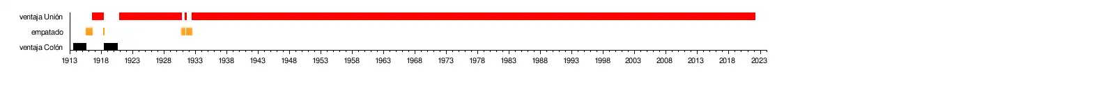 Tomando en cuenta los datos verificados hasta el momento correspondientes a Torneos Oficiales tanto del Amateurismo en Liga como del Profesionalismo en Liga y AFA, se han enfrentado en un total de 159 partidos, de los cuales Unión ganó 57 veces, Colón ganó 48 veces y empataron en 54 oportunidades (además se disputaron 4 partidos de los que no se tienen registros sobre los resultado hasta la fecha).[5][6][7]