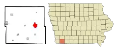 ![]() Localización de Clarinda en el Condado de Page, Iowa. ![]() Ubicación de Iowa en EE. UU. | ||