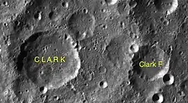 Por convención estos elementos son identificados en los mapas lunares poniendo la letra en el lado del punto medio del cráter que está más cerca de Clark.