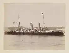 ![]() HMS Blake visitando los Estados Unidos en la década de 1890. | ||