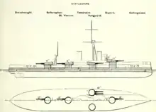 • 10 cañones de 305 mm/50 cal Mk XI (5 × 2) • 20 cañones de 102 mm • 3 tubos torpederos de 457 mm. | |