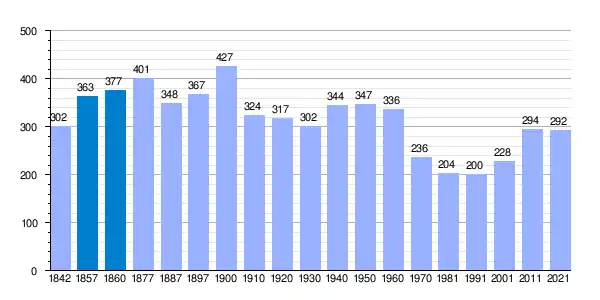 | Gráfica de evolución demográfica de Clavijo[4] entre 1842 y 2021 |