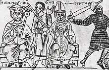 Fue en el mismo año que el emperador Enrique IV comenzó su guerra abierta contra el Papa Gregorio VII.[5][6] En el Concilio de Worms (Alemania) en enero de 1076, se adoptó la determinación de deponer a Gregorio, y a esta decisión se unieron los obispos desimoníacos de la Italia Transpadana. Entre ellos debió encontrarse Guibert, quien compartió la sentencia de excomunión e interdicción, por la cual Gregorio se pronunció en contra de los obispos transpadanos en el concilio cuaresmal de 1076.