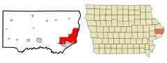 ![]() ![]() Localización de Clinton en el Condado de Clinton, Iowa. ![]() Ubicación de Iowa en EE. UU. | ||