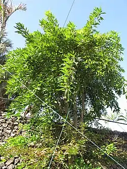 Es un árbol de tamaño grande con una altura comprendida entre 5 y 15 metros, pero tiene un tronco corto (30-40 cm de diámetro). Florece durante el verano y puede prolongar su floración hasta los meses de abril y mayo en algunas regiones. Sus frutos maduran en el período comprendido entre los meses de mayo y julio, cuando se inicia la caída de las hojas. Tiene hojas brillantes y es un árbol frondoso.[6]