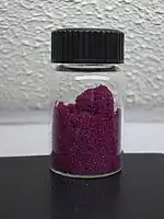El cloruro de cobalto (II) es un compuesto inorgánico de cobalto y cloro, de fórmula CoCl2. El compuesto forma varios hidratos CoCl2 ·nH2O, para n = 1, 2, 6 y 9. No se ha confirmado la formación de tri- y tetrahidratos.[2] La forma anhidra es un sólido cristalino azul, el dihidrato es púrpura y el hexahidrato es rosa. Las muestras comerciales suelen ser el hexahidrato, que es uno de los compuestos de cobalto más utilizados en el laboratorio.[3]