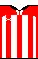 - Uniforme titular: Camiseta blanca con bastones verticales rojos, pantalón y medias blancos.