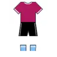 Uniforme alternativo: Camiseta bordo con vivos celestes y blancos, pantalón negro, medias blancas.