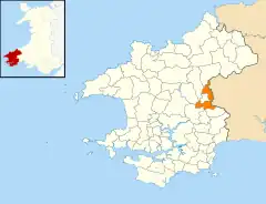 ![]() Clunderwen Localización de Clunderwen en Pembrokeshire | ||