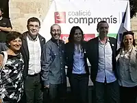 Coalició Compromís (CCPV; «Coalición Compromiso» en español), más conocido simplemente como Compromís, es un partido político español inscrito en el Registro de Partidos Políticos del Ministerio del Interior desde el 10 de junio de 2010.[9] De facto, este partido tiene carácter meramente instrumental, siendo empleado como herramienta para la gobernanza de la coalición Compromís:Més-Iniciativa-VerdsEquo (denominada hasta 2023 Compromís:Bloc-Iniciativa-VerdsEquo), que ha concurrido a las elecciones a las Cortes Valencianas celebradas desde el año 2010.[10][11]