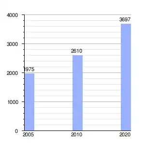 Cuenta con 3697 habitantes lo que representa un incremento promedio de 3.6% anual en el período 2010-2020 sobre la base de los 2610 habitantes registrados en el censo anterior. Ocupa una superficie de 0.6745 km², lo que determina al año 2020 una densidad de 5481 hab/km².[6]