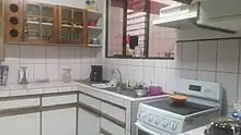 La cocina es aquel lugar especialmente equipado y preparado para la preparación de comidas o alimentos.[1] Una cocina moderna incluye como mínimo una cocina (con quemadores), un fregadero y el frigorífico y los muebles para almacén, los tres vértices del triángulo de trabajo que se ha de respetar para poder trabajar cómodamente en la cocina. La encimera es la superficie de trabajo en la cocina está hecha normalmente de materiales noble como el mármol, la madera o la pizarra, en la actualidad están también de moda materiales sintéticos de gran resistencia y que facilitan el mantenimiento y la limpieza en la cocina. Además es frecuente que exista un refrigerador, un horno de microondas, una campana extractora y otros aparatos electrodomésticos, como licuadora y batidora que facilitan el trabajo en la cocina. El tamaño de las cocinas varía y depende del tamaño de la vivienda. En casas pequeñas se suele encontrar la cocina-comedor para ahorrar espacio y en casas grandes se acostumbra a colocar dentro la lavadora.