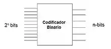 Un codificador es un circuito combinacional con 2N entradas y N salidas, cuya misión es presentar en la salida el código binario correspondiente a la entrada activada.