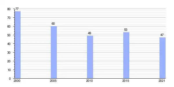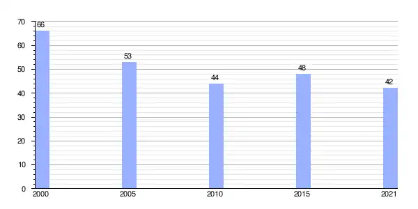 | Gráfica de evolución demográfica de Coedo (parroquia) entre 2000 y 2021 |