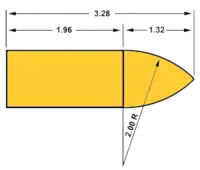 - ℓ, longitud de la cabeza (ojiva) en número de calibres.