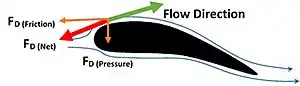 - Véase sustentación para componentes de la fuerza en dirección transversal a la dirección del flujo