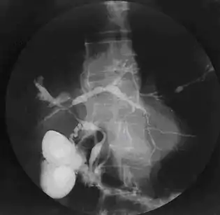 ![]() Colangiograma de una colangitis esclerosante primaria. | ||