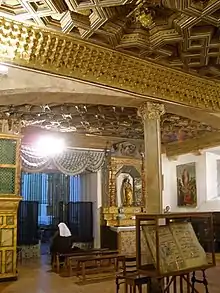 Construido en el siglo XVIII por Miguel Martínez, sustituyó a uno anterior renacentista del que se exponen varias tablas en el museo del convento. Destaca el relieve de la Anunciación en la parte alta y el manifestador abridero rodeado de espejo bajo éste.