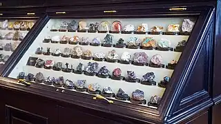 - Colección de mineralogía del Museo Nacional de Praga.[21] La colección de mineralogía tiene como origen la del Museum naturae Pragense, fundado en 1786. La localización actual se estableció en 1892. La colección de minerales supera los 120.000 ejemplares, contando además con más de 20.000 piedras preciosas, meteoritos y tectitas.[22]