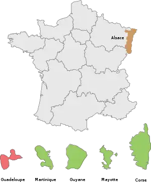 | Alsacia | 1 de enero de 2021 | Loi no 2019-816 du 2 août 2019 | Concejo Colectividad Europea de Alsacia | Presidente regional |
