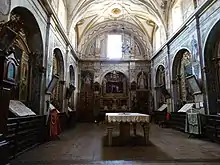 El conjunto principal interior es estilo renacentista, del siglo XVI. Del interior destaca el retablo mayor, que está fechado en el siglo XVII, corresponde a Hernando de Murillas y en la obra también participó el escultor Juan de Bazcardo, uno de los artistas más conocidos de su época. El órgano barroco fue fabricado por el italiano Andres Gasparini en 1767 y fue recientemente restaurado, ya que se encontraba en mal estado.[3]