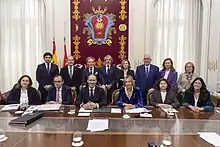 En el final de franquismo la corporación también participó en las turbulencias políticas del momento, con una importante participación de colegiados en la oposición antifranquista.[26] El Gobierno franquista llegó a intervenir en 1972 para evitar varias candidaturas a la junta de gobierno del Colegio de opositores como Enrique Tierno Galván, Pablo Castellano o José María Gil-Robles lo que llevó a la suspensión de las elecciones por la retirada del resto de candidatos.[27] Pedrol Rius, que ocupó el cargo de Decano desde 1972 hasta 1992, adaptó las instituciones de la corporación al nuevo marco constitucional.[28] En el mandato de su sucesor Luis Martí Mingarro se aprobaron los últimos estatutos vigentes del Colegio, de 2007.[29] En 2012, Sonia Gumpert Melgosa ganó las elecciones para decana, convirtiéndose así en la primera mujer en ocupar el cargo en la corporación madrileña.[30] Durante su mandato se organizó en abril de 2015 el I Congreso de la Abogacía Madrileña[31] y se avanzó en la descentralización de la corporación con la apertura de una nueva sede en Móstoles para la zona sur de Madrid.[12] En las siguientes elecciones Gumpert no se presentó a la reelección y fue elegido nuevo decano José María Alonso ganando con 4.406 votos por los 3.880 obtenidos por Javier Íscar que quedó en segundo lugar.[32] Tomó posesión el 8 de enero de 2018.[33] En marzo de 2022 la junta general acordó el cambio de denominación a Ilustre Colegio de la Abogacía de Madrid con el objetivo recogido en su Plan de Igualdad: "se evitará la ambigüedad, se dotará al nombre de este Colegio de claridad y precisión respecto a quienes lo integran y se evitarán los usos que en nuestra lengua pueden contribuir a la discriminación e invisibilización de las mujeres en la sociedad".[2] El cambio de denominación se hizo oficial con su publicación en el Boletín Oficial de la Comunidad de Madrid el 5 de julio de 2022.[3] En diciembre de 2022 Eugenió Ribón, miembro de la junta anterior, ganó las elecciones para suceder a Alonso como Decano con 3680 votos por los 2805 obtenidos por Juan Gonzalo Ospina, 1750 por Miguel Durán, 1190 por Raúl Ochoa y 1152 por Ángeles Chinarro.[34]