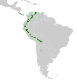 ![]() | Colibri cyanotus | (Bourcier, 1843) | colibrí oreja violeta menor[20] | ![]() | |