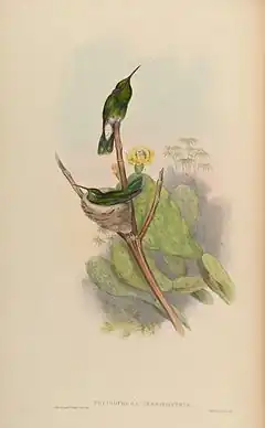 - Vieillot, L.P. (1816). Analyse d'une nouvelle ornithologie élémentaire (en francés). 70 pp. París: Deterville. Trochilus serrirostris, p. 69. Disponible en Biodiversitas Heritage Library.