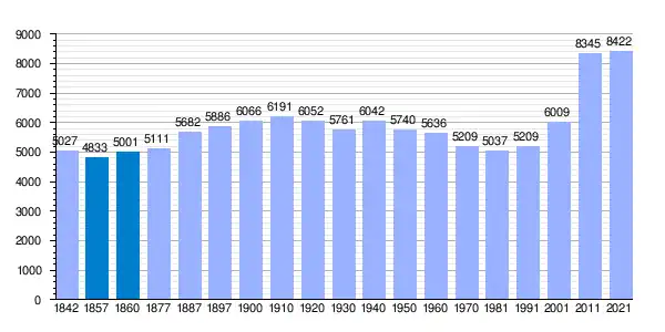 | Gráfica de evolución demográfica de Colmenar de Oreja[5] entre 1842 y 2021 |