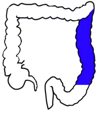 El colon descendente[1] de los humanos es un órgano hueco en forma de tubo que forma parte del aparato digestivo y se encuentra localizado en la región del abdomen. Forma parte del intestino grueso (colon). También denominado 'colon distal' incluye el colon descendente (la parte izquierda del colon) y el colon sigmoide (la sección del colon en forma de «S» que se conecta con el recto).[2]