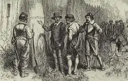 Durante la exploración inicial de la costa del continente y los asentamientos nativos de la zona se acusó a los indígenas del pueblo de Aquascogoc de robar una copa de plata. Como represalia la expedición saqueó y quemó la aldea. Los informes contemporáneos del escritor y cortesano Richard Hakluyt del primer viaje a Roanoke, recopilados de testimonios de varios inversores que incluían a Sir Walter Raleigh (Hakluyt nunca llegó a viajar al Nuevo Mundo) también describen este hecho.