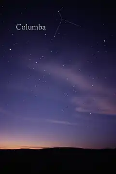 Columba (‘paloma’ en latín) es una pequeña constelación justo al sur de Canis Maior y Lepus. Fue creada por Petrus Plancius en 1592.[1]