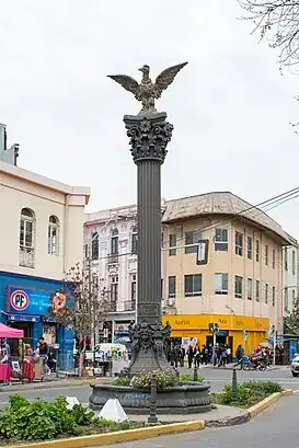 Consiste en una columna estriada de fierro fundido obra de Albert-Ernest Carrier-Belleuse, con una placa dedicatoria en su base en francés. En lo alto de la columna se encuentra una escultura de fierro fundido y bronce que representa un ave con cuerpo de águila y cabeza de cóndor, obra de Nicanor Plaza.[1] La columna fue inaugurada en 1912.[2]