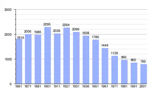 | Gráfica de evolución demográfica de Comano entre 1861 y 2001 |