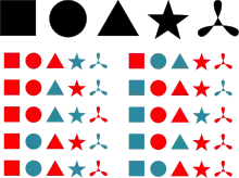 Para contar el primer caso, dado que el objeto rojo tiene que estar incluido, solo es necesario escoger dos objetos entre los cuatro azules restantes, lo cual puede efectuarse de formas.