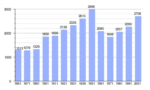 | Gráfica de evolución demográfica de Comezzano-Cizzago entre 1861 y 2001 |