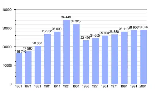 | Gráfica de evolución demográfica de Comiso entre 1861 y 2001 |