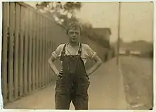 Lewis Hine fue un fotógrafo periodista influyente en los años previos a la Primera Guerra Mundial. Fue durante esos años que la economía americana iba bien y la necesidad de mano de obras se encontraba en su punto más alto. El trabajo barato era necesario y los negocios americanos no solo buscaban trabajadores inmigrantes sino también trabajadores infantiles. Los trabajos orientados a la fábrica eran muy específicos y un niño era candidato perfecto para el trabajo que era necesario. Sus manos pequeñas y energía eran de beneficio la línea de ensamblaje.[8]
