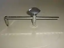 Un compás radial (también denominado compás de barra) es un utensilio de dibujo utilizado para trazar con precisión circunferencias cuyas dimensiones exceden el radio máximo abarcable con un compás convencional. Su diseño consiste en una barra metálica o de madera recta de gran rigidez, sobre la que se colocan dos o más cursores deslizantes, cuya posición se fija mediante tornillos que se pueden apretar manualmente.[1] Como en cualquier compás, el cursor que se sitúa en el centro de la circunferencia está equipado con una aguja, mientras que en el otro cursor se coloca un útil capaz de marcar sobre el soporte elegido el perímetro de la circunferencia. El instrumento puede ser completo o estar formado por varias piezas individuales (alargadores) conectadas entre sí.